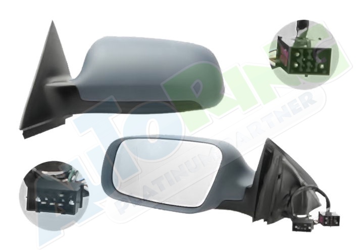 elektrické ovládání, černý kryt/částečně připraveno pro lakování, vyhřívané, asférické krycí sklo, včetně paměti