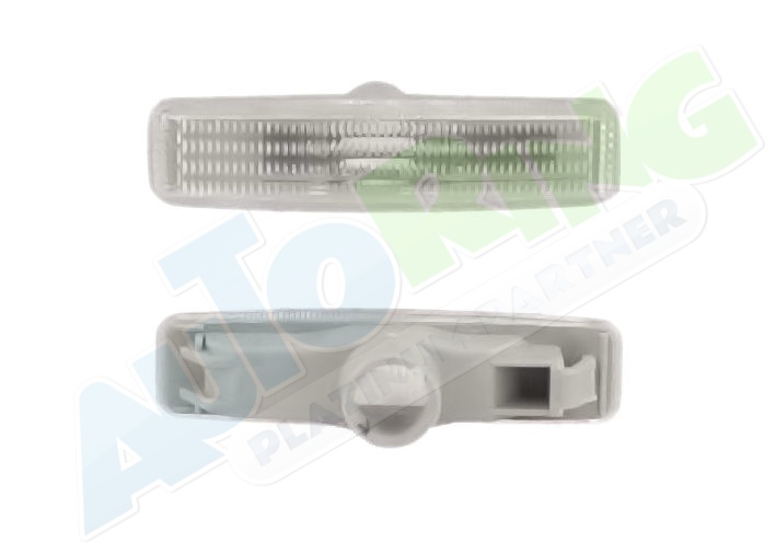 obrysové světlo připojené světlovodem, žárovka H1+H1, mechanické naklápění, provedení transparentní + stříbrné, tuning