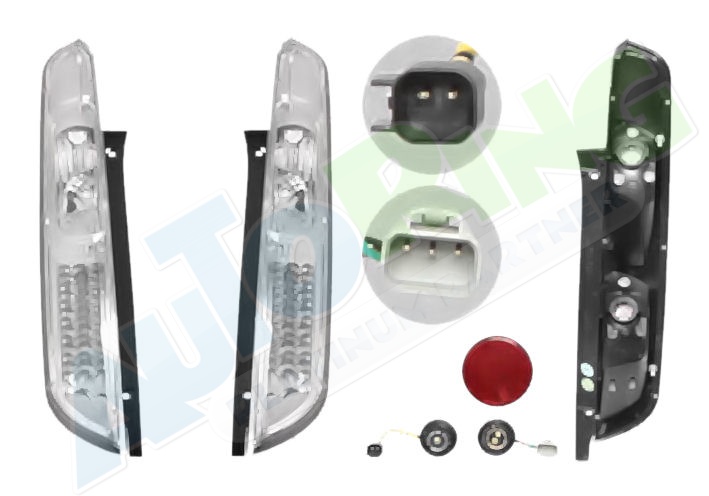 obrysové světlo připojené světlovodem, žárovka H1+H1, mechanické i elektrické naklápění, provedení transparentní + stříbrné, tuning