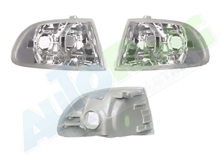obrysové světlo připojené světlovodem, žárovka H1+H1, mechanické naklápění, provedení transparentní + stříbrné, tuning