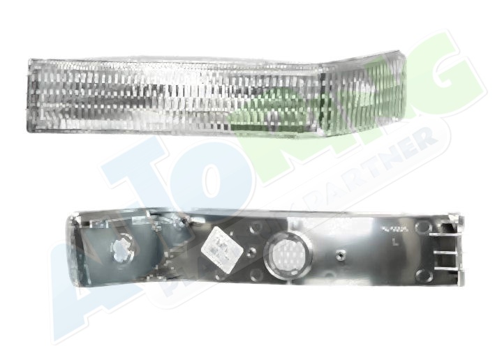 s blinkrem, obrysové světlo připojené světlovodem, typ USA, žárovka H1+H3, mechanické naklápění, provedení transparentní + stříbrné, tuning