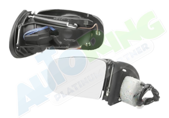 elektrické ovládání, bez krytu, vyhřívané, asférické krycí sklo, krycí sklo v barevném provedení chromové (stříbrné), sklopné, včetně paměti, konektor s 13 piny
