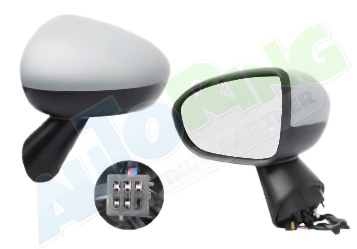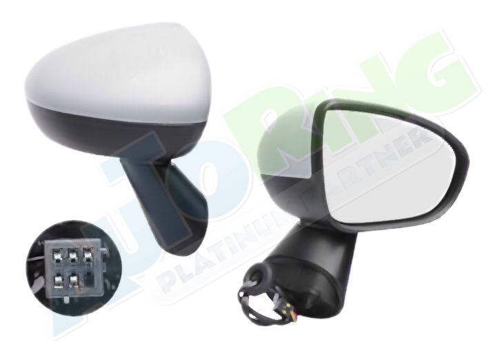 elektrické ovládání, částečně připraven pro lakování, vyhřívané, krycí sklo vypouklé, konektor s 5 piny, podstavec zrcátka barva černá