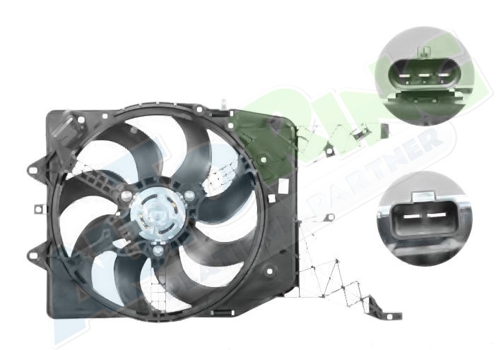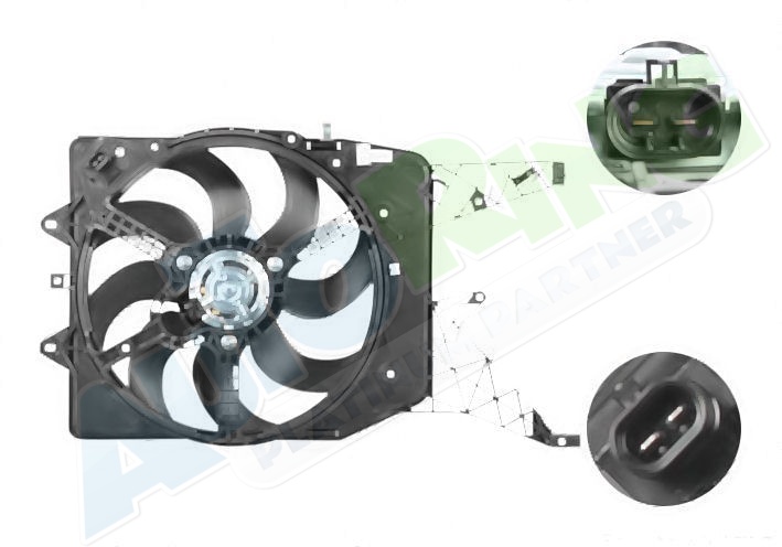 Parametry:výkon motorku 280W, průměr ventilátoru 395 mm, 2 kolíky