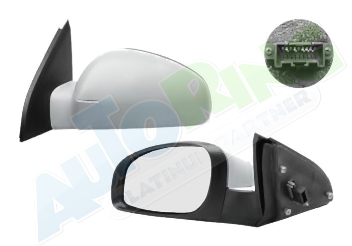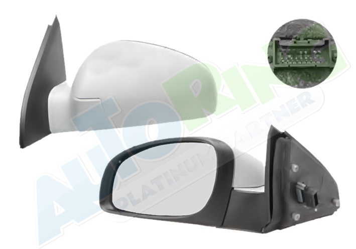 elektrické ovládání, částečně připraveno pro lakování, vyhřívané, asférické krycí sklo, konektor 5 pinů