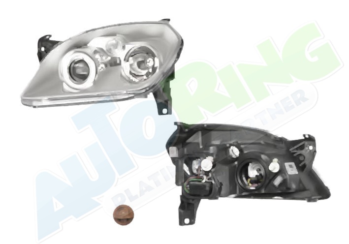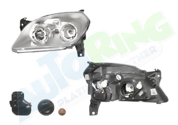 s vložkou proužků kolem optiky, žárovka H1+H7, elektrické naklápění, bez servomotorku, barevné provedení stříbrný rámeček reflektoru