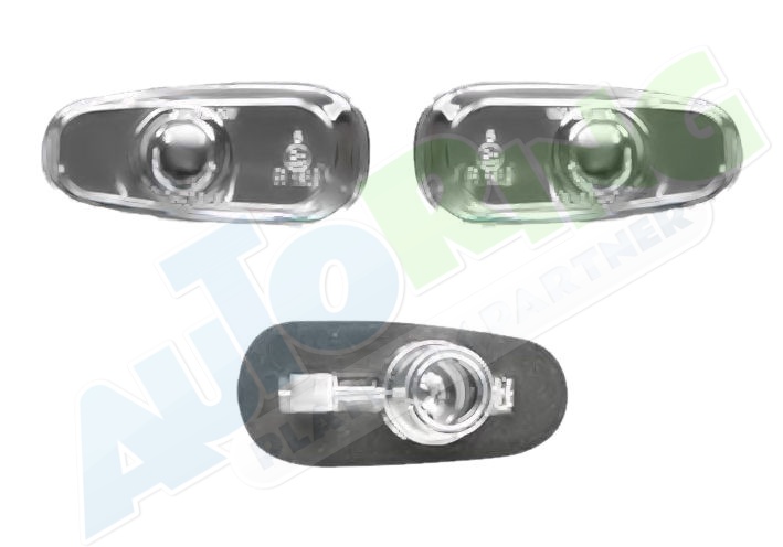 obrysové světlo připojené světlovodem, žárovka H1+H1, mechanické naklápění, provedení transparentní + stříbrné, tuning