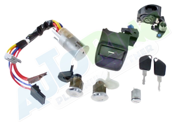 včetně klíčků, 2 vložky zámku dveří, se zámkem, s vložkou a zámkem kufru, s vložkou zámku schránky