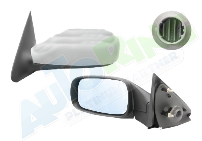 elektrické ovládání, kryt částečně připraveno pro lakování, vyhřívané, asférické krycí sklo, krycí sklo zabarvené do modra, sklopné, včetně paměti