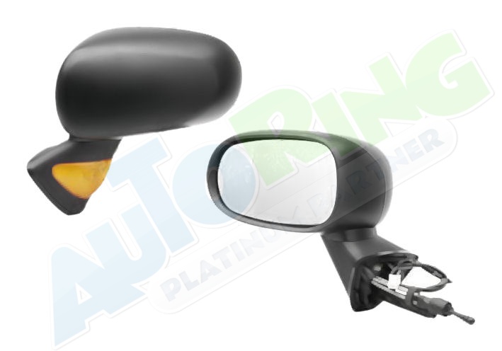 elektrické ovládání, kryt částečně připraven pro lakování, vyhřívané, asférické krycí sklo, krycí sklo v barevném provedení chromové (stříbrné), s blinkrem barva oranžová