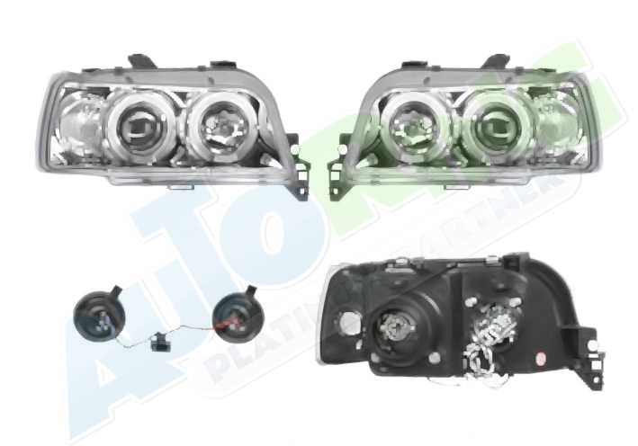 obrysové světlo připojené světlovodem, žárovka H1+H1, mechanické naklápění, provedení transparentní + stříbrné, tuning