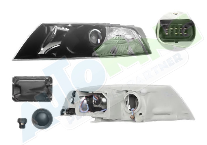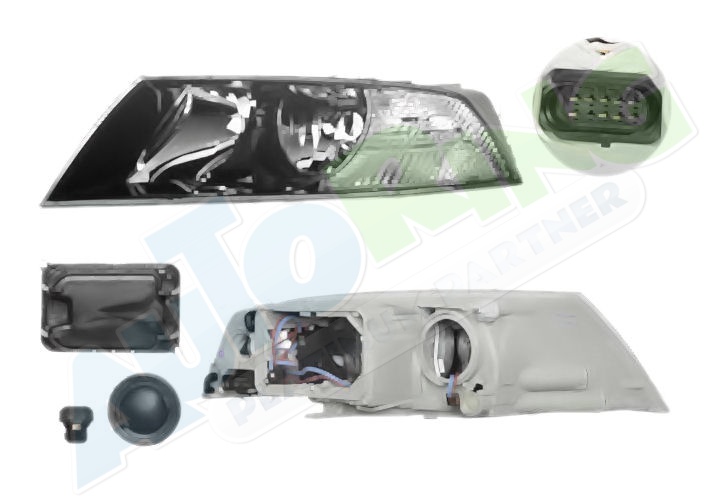 s optikou, žárovka H1+H7, elektrické naklápění, včetně servomotorku, barva černá