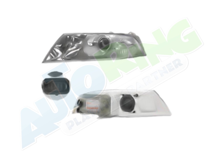 s LED obrysovým světlem, žárovka H1+H7, mechanické i elektrické naklápění, provedení transparentní + stříbrné, tuning