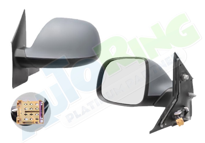 elektrické ovládání, kryt částečně připraven pro lakování, vyhřívané, krycí sklo vypouklé, krycí sklo v barevném provedení chromové (stříbrné), sklopné, konektor s 9 piny