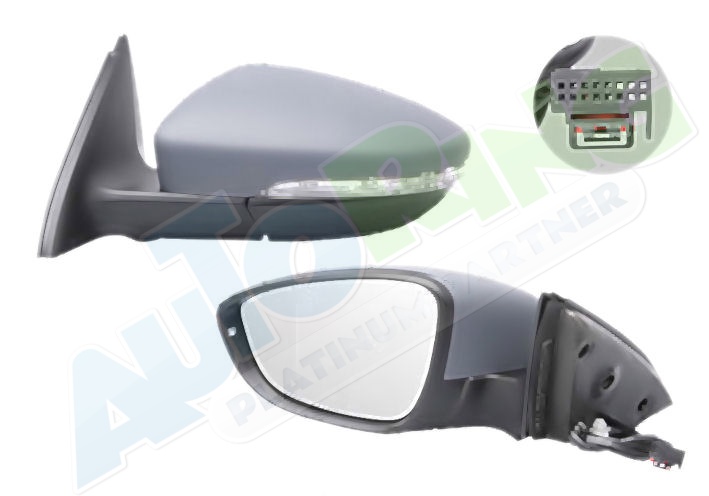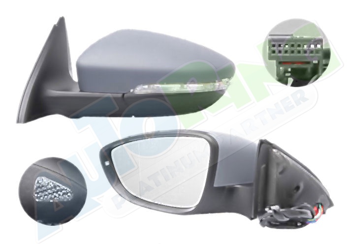 elektrické ovládání, částečně připraven pro lakování, vyhřívané, asférické krycí sklo, sklopné, konektor s 9 piny, s blinkrem, se světlem s osvětlením prahu