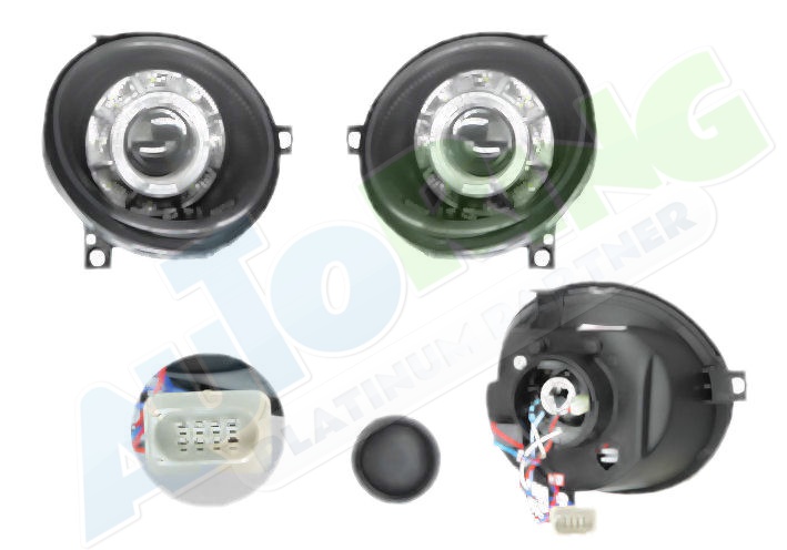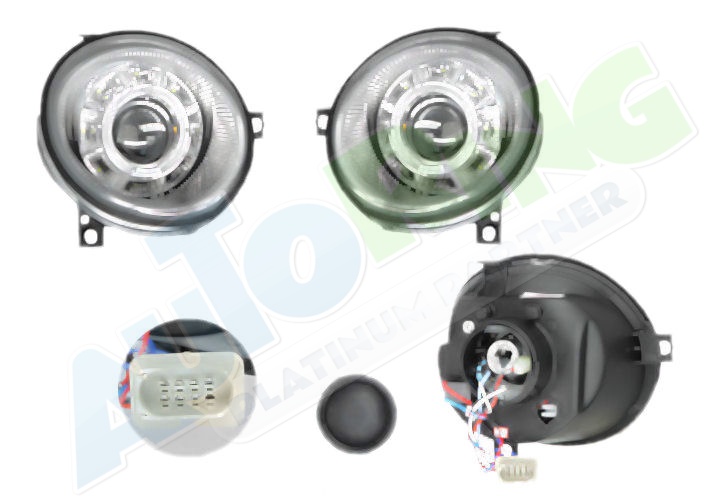 s LED obrysovým světlem, žárovka H9, mechanické i elektrické naklápění, provedení transparentní + černé, tuning